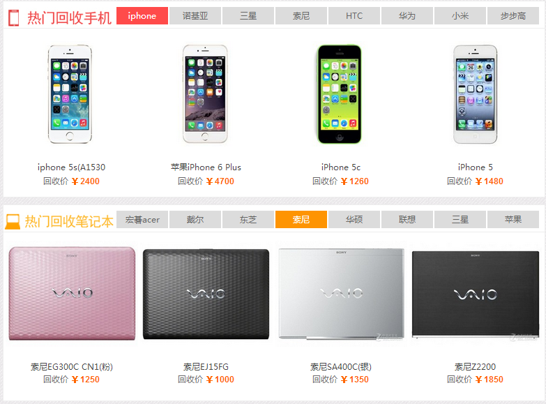 维歆回收网网首页热门回收机型展示
